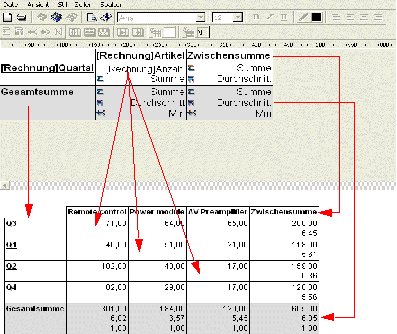 Sie fügen den Wert eines Feldes Zwischensumme in die Zeilen für die Zwischensumme ein