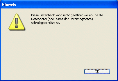 Keine Warnung anzeigen, wenn Struktur im Nur-Lesen Modus: Öffnen Sie eine Datenbank, deren Strukturdatei im Nur-Lesen Modus ist, erscheint eine Meldung. Öffnen Sie die Datenbank in diesem Status, werden die Änderungen an der Strukturdatei nicht gesichert. Diese Meldung kann in bestimmten Fällen unerwünscht sein, z.B. bei Datenbanken auf CD-ROM, die nur zur Konsultation dienen. Markieren Sie für solche Fälle diese Option.