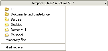 Die aktuelle Position des Ordners erscheint in der DropDown-Liste neben Aktuell. Klicken Sie in die Liste, um den vollständigen Pfadnamen anzuzeigen und bei Bedarf zu kopieren: