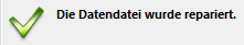 Ist die Reparatur abgeschlossen, erscheint die Seite "Reparatur" des MSC. Eine Meldung gibt an, ob die Reparatur erfolgreich war. In diesem Fall können Sie die Datenbank sofort öffnen.