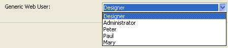 Sie können einen Benutzer, der zuvor in der 4D Kennworttabelle definiert wurde, als “allgemeinen Web-Anwender” festlegen. In diesem Fall kann jeder Browser, der die Verbindung zur Datenbank herstellt, die diesem generischen Benutzer zugeordneten Zugriffsrechte und Einschränkungen nutzen. So können Sie den Zugriff des Browsers auf die verschiedenen Teile der Datenbank einfach steuern.
