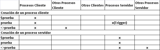 Una selección temporal cuyo nombre no tiene como prefijo los símbolos (<>) es proceso en alcance y está disponible sólo en el proceso en el cual fue creada.