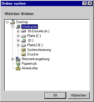Select folder zeigt das Standarddialogfenster zum Navigieren in den Volumes und Ordnern der Workstations.