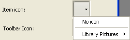 The Item icon option can be used to associate an icon with the selected item. The icon to be used must be stored beforehand in the 4D