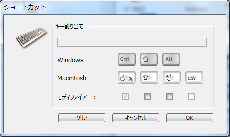 注: アクティブオブジェクトにキーボードショートカットを割り当てることもできます。Ctrl/Commandキーの割り当てが衝突した場合、アクティブオブジェクトが優先されます。アクティブオブジェクトへのキーボードショートカット割り当てについてはキーボードショートカットを参照してください。