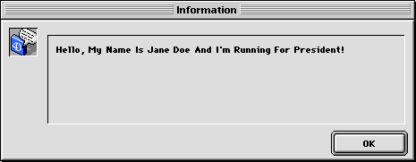 ALERT(Capitalize text ("olá, meu nome é João da Silva e sou candidato a presidente!"))