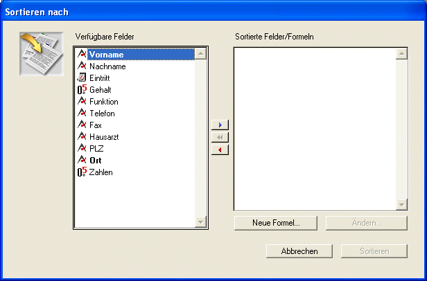 - Schaltfläche Abbrechen: Damit brechen Sie das Sortieren ab und kehren zum gerade verwendeten Formular zurück.