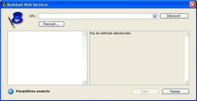 Vous pouvez également indiquer un URL local, c’est-à-dire l’adresse d’un fichier WSDL stocké sur votre disque dur. Pour cela, cliquez sur le bouton Parcourir... et choisissez le fichier WSDL local, ou saisissez directement son chemin d’accès dans la zone “URL :”. Le chemin d’accès du fichier local débute par “file://” puis utilise le séparateur de dossiers du système. Vous devez passer un chemin d’accès absolu.