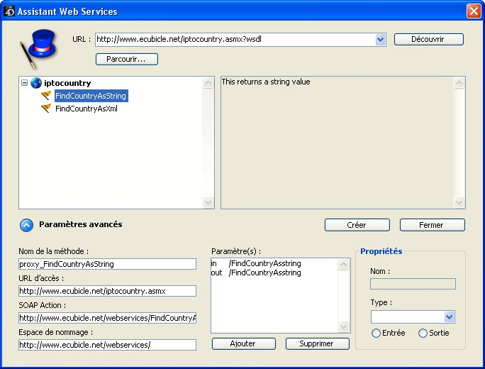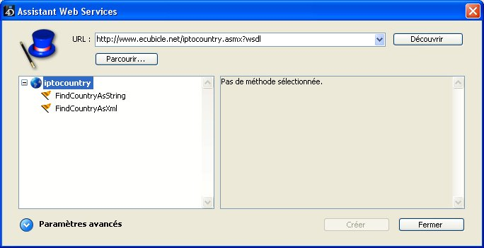 Vous pouvez également utiliser l’Assistant Web Services pour construire une méthode proxy dont vous aurez saisi manuellement les paramètres. Dans ce cas, vous n’utilisez pas l’analyseur de WSDL.