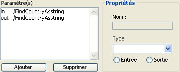 • Pour ajouter un paramètre, cliquez sur le bouton Ajouter puis définissez ses caractéristiques dans la zone Propriétés.