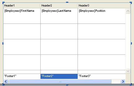 If footers are displayed, you can click to select one when the list box object is selected in the Form editor: