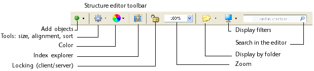 ストラクチャーエディターにはオブジェクト追加などの機能、およびナビゲーションやオプションを表示するツールバーがあります: