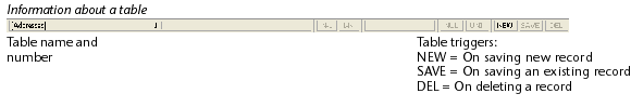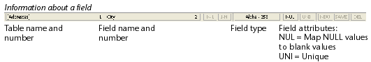 ストラクチャーエディター中で、それぞれのテーブルはテーブルイメージとして表現されます。テーブルにはフィールドとその型がアイコンで表示されます。マウスを重ねると、情報バーにテーブルやフィールドの情報が表示されます。
