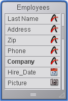 テーブルにフィールドを追加するときや、テーブルのサイズを小さくしたときなど、テーブルイメージが表示できるよりも多くのフィールドがテーブルに含まれることがあります。このような場合、4Dは自動でスクロールバーを追加し、フィールドリストをスクロールして表示できるようにします: