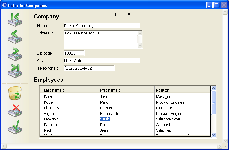 4D oferece três ações padrão para responder as necessidades básicas para a gestão de subregistros: Editar subregistro, Eliminar subregistro e Adicionar subregistro. Quando o formulário inclui vários subformulários, a ação se aplica ao formulário que tem o foco.