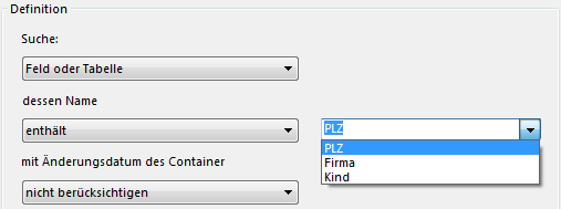 2. Richten Sie Ihre Suche mit den verschiedenen Optionen im Bereich "Definition" ein und geben Sie bei Bedarf eine zu suchende Zeichenkette ein.