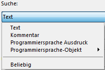 Im DropDown-Menü Suche können Sie den Elementtyp angeben. Es gibt folgende Möglichkeiten: