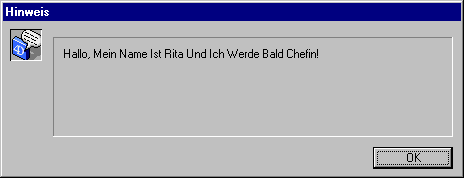 ALERT(Capitalize text("Hallo, mein Name ist Rita und ich werde bald Chefin!"))