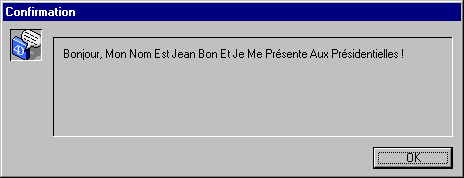 ALERTE(PasserEnCap("Bonjour, mon nom est Jean Bon et je me présente aux présidentielles !"))