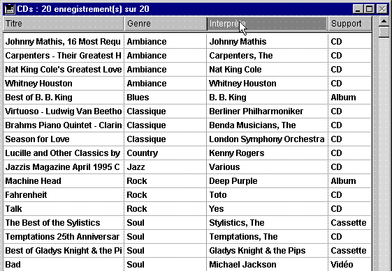 TRIER([CDs];(tPtrTriChp{$i})->;>;*) `On construit le tri