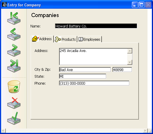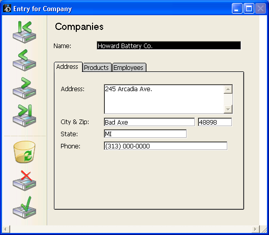 この画面は、マルチページフォームの各ページを表わしたり、またはユーザがタブがクリックすると変わるオブジェクトを表わすこともできます。タブコントロールをページ移動ツールとして使用する場合、ユーザがタブをクリックするとGOTO PAGEコマンドまたはページ指定標準アクションが使用されます。