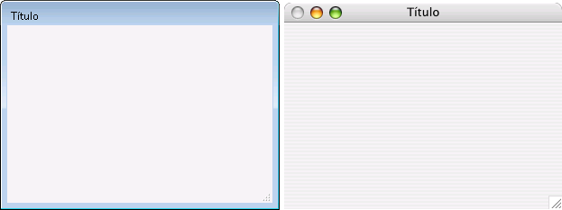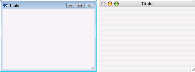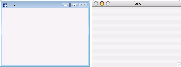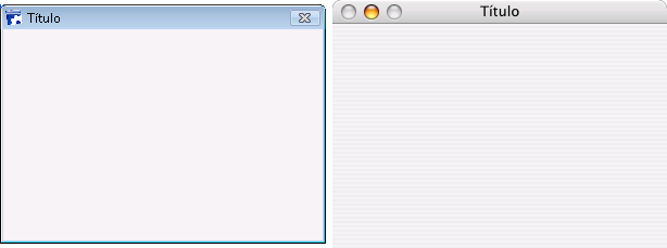 La siguiente muestra cada tipo de ventana, en Windows (izquierda) y en Macintosh (derecha).