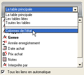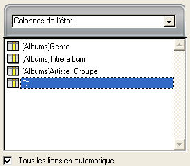 Sélectionnez la ligne Colonnes de l’état dans la liste déroulante d’affichage des champs. La liste affiche les en-têtes des colonnes définies dans l’état :