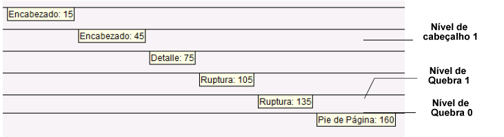 Se utilizar a função Subtotal para inicializar o processo de quebras, você deve criar uma área de quebra para cada nível de quebra gerado pela ordenação, menos um. Se não necessita imprimir nada em uma das áreas de quebra, pode reduzir seu tamanho a nada colocando seu marcador sobre outra linha de controle. Se tiver mais níveis de ordenação que áreas de quebra, a última área de quebra se repetirá durante a impressão.
