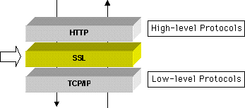 Ao nível da arquitetura de rede, o protocolo SSL se insere entre a capa TCP/IP (nível baixo) e o protocolo de alto nível HTTP. SSL foi criado principalmente para trabalhar com HTTP.