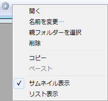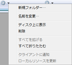 フォルダーリストのコンテキストメニューを使用することもできます。このメニューのコマンドはアクションメニューのそれと同じです。