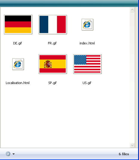 • サムネール表示モードでは、選択されたフォルダーのファイルはサムネールとして表示されます。ピクチャータイプのファイルは (ピクチャーフォーマットを4Dが認識できれば) 内容がプレビューされます。他のタイプのファイルはシステムアイコンで表示されます。