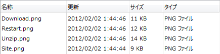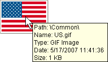 各ピクチャーに関連付けられるヘルプTipからは追加の情報が提供されます: パス名 (相対)、名称、タイプ、更新日時、サイズ。