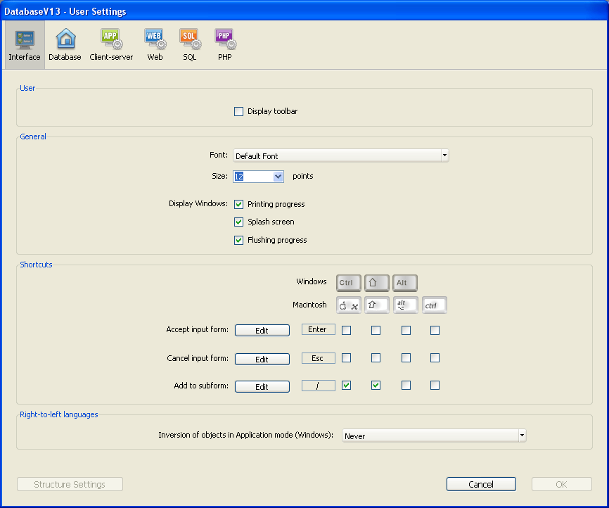 4D v13.4ユーザー設定を使用する |