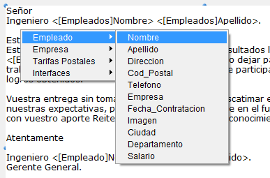 Puede incluir el nombre del campo o variable insertándolo entre los símbolos < >.
