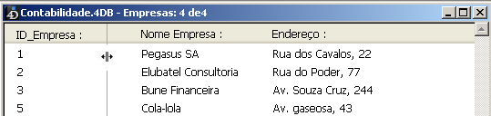 Em modo listado, 4D exibe, se necessário, linhas vazias debaixo dos últimos registros visualizados, de modo que se encha a janela completamente: