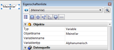 Hinweis: Gibt es keinen Variablennamen, wird der Objektname in im Formulareditor in Anführungszeichen angezeigt (wenn das Objekt standardmäßig einen Variablennamen anzeigt).