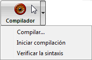 Esta opción es la única disponible si no tiene la licencia adecuada que permita la compilación de aplicaciones. La verificación de la sintaxis también puede lanzarse directamente utilizando el comando Verificar la sintaxis asociado al botón “Compilador”.