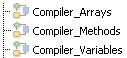 Estos métodos, cuyos nombres deben obligatoriamente comenzar por “Compiler_”, son generados por 4D. Usted puede definir el nombre por defecto de cada uno de los 5 métodos de compilación en las Preferencias (ver Métodos Compilador para...). Los métodos compiler generados y mantenidos automáticamente por 4D tienen el atributo “Invisible”:
