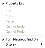 When the user clicks outside of any object, the standard display and editing commands of the form editor are available: display of the Property List, Magnetic grid activation and display of the editor tools: