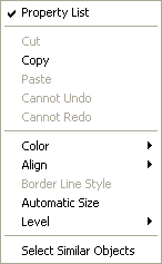 • Align: Provides access to commands for aligning and distributing objects. The alignment commands are only enabled if at least two “movable” objects are selected. The distribution commands are only enabled if at least three “movable” objects are selected.
