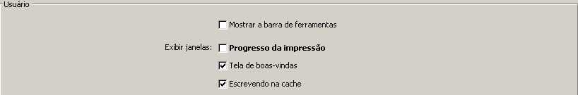 Nas caixas de diálogo Preferências e Propriedades, os parâmetros cujos valores foram modificados aparecem em negrito: