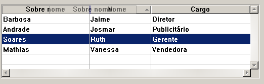 Nota: Nos list box de tipo seleção, não é possível mudar a ordem das linhas movendo-as com o mouse.