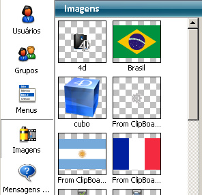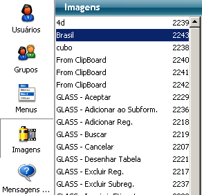 A janela da biblioteca de imagens exibe a lista de imagens armazenadas no banco. Incluindo os comandos de gestão de imagens como também uma barra de ferramentas para editar o conteúdo das imagens: