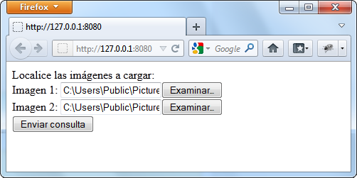 En este ejemplo, un formulario web permite descargar en el servidor HTTP varias imágenes desde un navegador y mostrarlas en la página. Este es el formulario web: