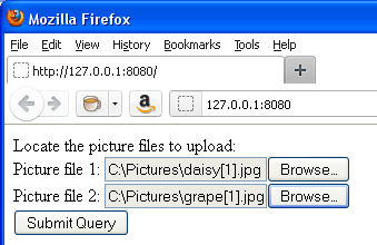 Neste exemplo, um formulário web permite descarregar no servidor HTTP varias imagens desde um navegador e mostrar-las na página. Este é o formulário web:
