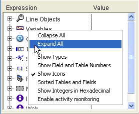 Addtional options are provided by the context menu of the Watch pane. To display this menu: