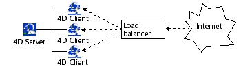 - すべての4DのWebサーバーにインストールされているWebサイトのミラーを利用して、4DのWebサーバーのパフォーマンスを最適化するためにロードバランスシステムを設定することができます。(ハードウェアーまたはソフトウェアーによる) ロードバランサーがカレントロードに基づいて、クライアントマシンにリクエストを送ります。