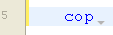 In the example given below, typing the string “cop” causes the display of a blue triangle indicating that several suggestions are available: