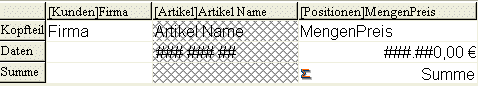 Zeilen ausblenden ist hilfreich, wenn der Bericht nur Berechnungen anzeigen soll. In diesem Fall blenden Sie den Datenteil aus, es erscheinen nur die Berechnungen in den Zeilen Gesamtsumme und Zwischensumme. Sie können ebenso die Zeile Umbruch oder Gesamtsumme ausblenden. Sie können eine Spalte ausblenden, wenn sie nur zur Sortierung dient und im Bericht nicht erscheinen soll. Sie können eine Spalte/Zeile entweder über Menübefehl oder über das Kontextmenü des Schnellberichteditors ausblenden