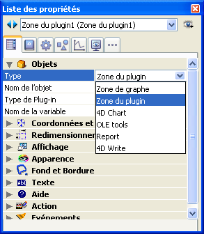 Pour désigner le plug-in à utiliser dans la zone, sélectionnez directement son nom dans la liste Type (thème “Objets”) :